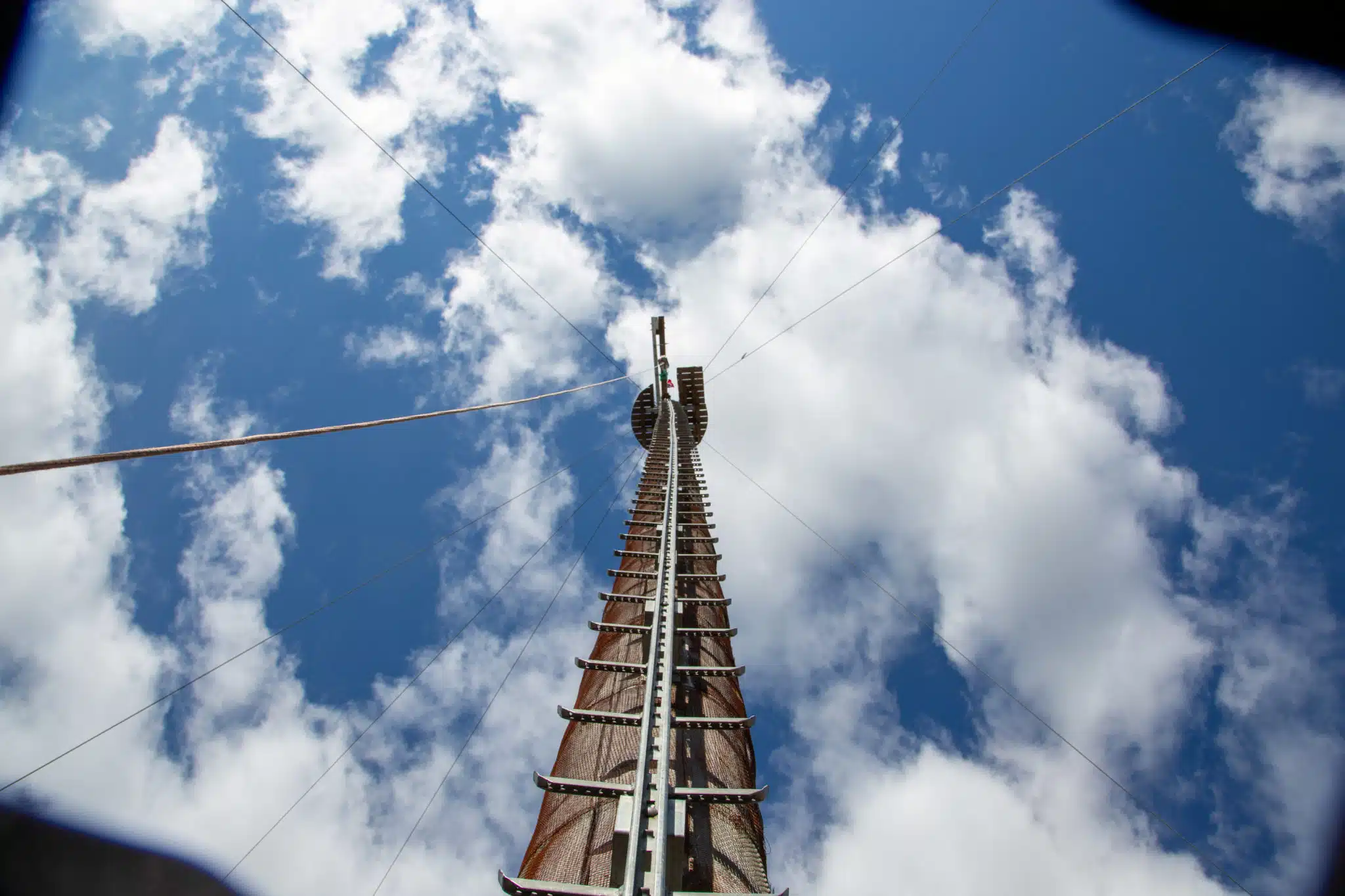 Klatre helt til toppen og ta vår lengste zipline fra 23 meters høyde. Utfordrende både fysisk og psykisk!