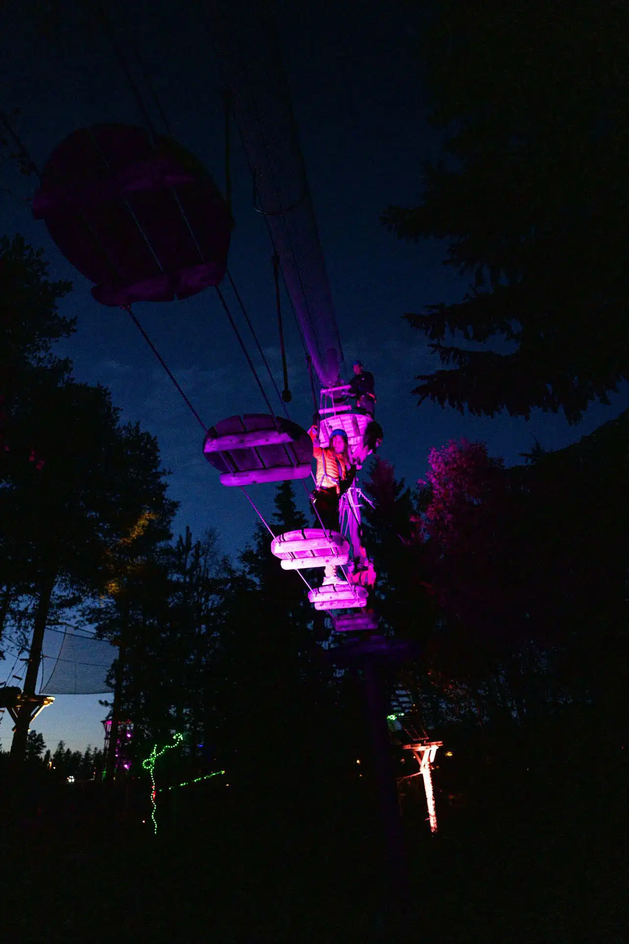 I høstmørket lyssettes noen av klatreløypene, for å gi deg en annerledes og magisk klatreopplevelse – Tenk å slippe seg ut i en zipline omsluttet av mørket mot et lyspunkt langt der framme! Klatreløypene vil være tilpasset både store og små eventyrere.