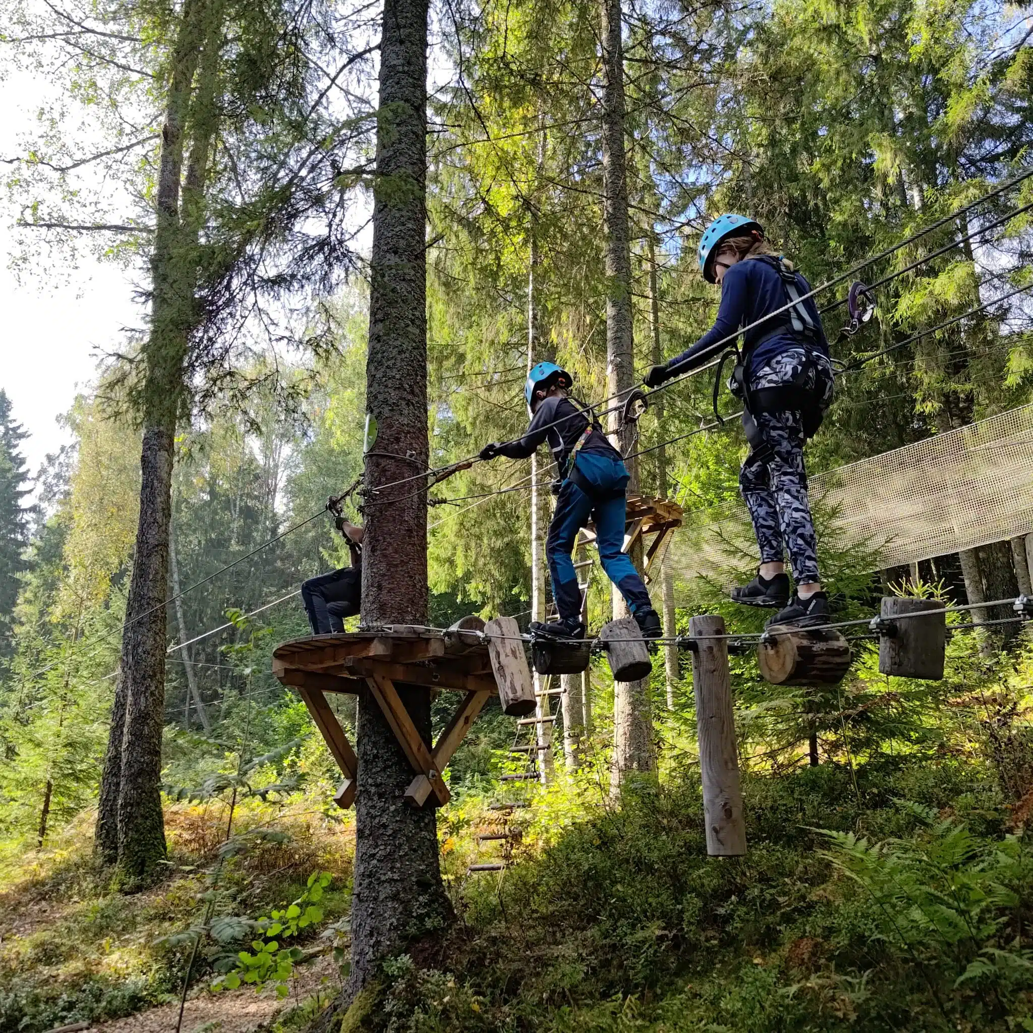 Mens vi prater zipliner søsknene i en rasende fart mot Tarzanløypa. Denne klatreløypa er hakket mer utfordrende. «Thea, hele treet vingler, så pass på at du ikke får en kongle i huet!», smeller det fra lillebror. Han er ivrig etter å klatre videre, men må vente på sin tur. De forserer hindrene med vennlig rivalisering og bra driv – også når de hopper ut kanten på hoppetårnet i slutten av løypa. Thea (som ikke fikk kongle i huet), forteller at det er bra at mye å velge mellom her i klatreparken. Og kranglinga? Det er ren søskenkjærlighet!